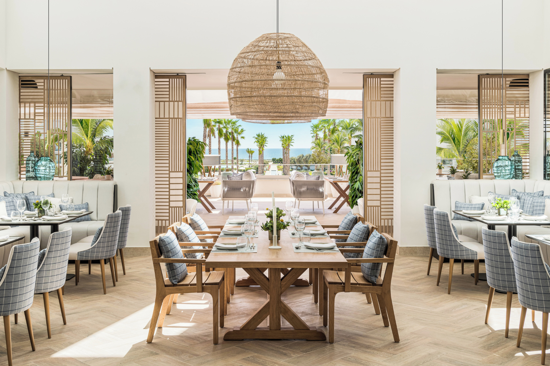 Num cenário de charme cosmopolita pode encontrar o Resort Ikos Andalusia, localizado em Mallorca, um projeto de FF&E e carpintaria realizado pelo Grupo BUK em 2023 que traduz a essência do resort.